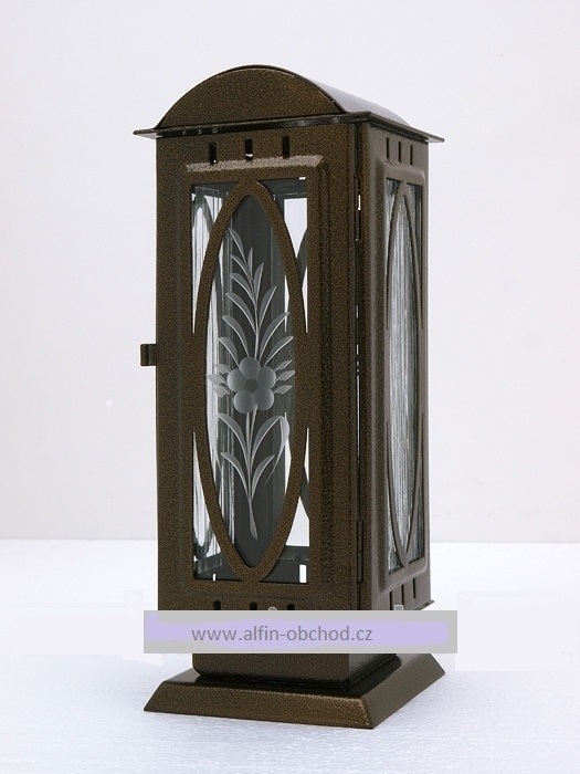 Svítilna na postavení na pomník, výstřih ovál, uchycení hmoždinkou , barevné varianty: černá-straro-zlatá-starostříbrná-staroměď rozměr 100x100x260 mm