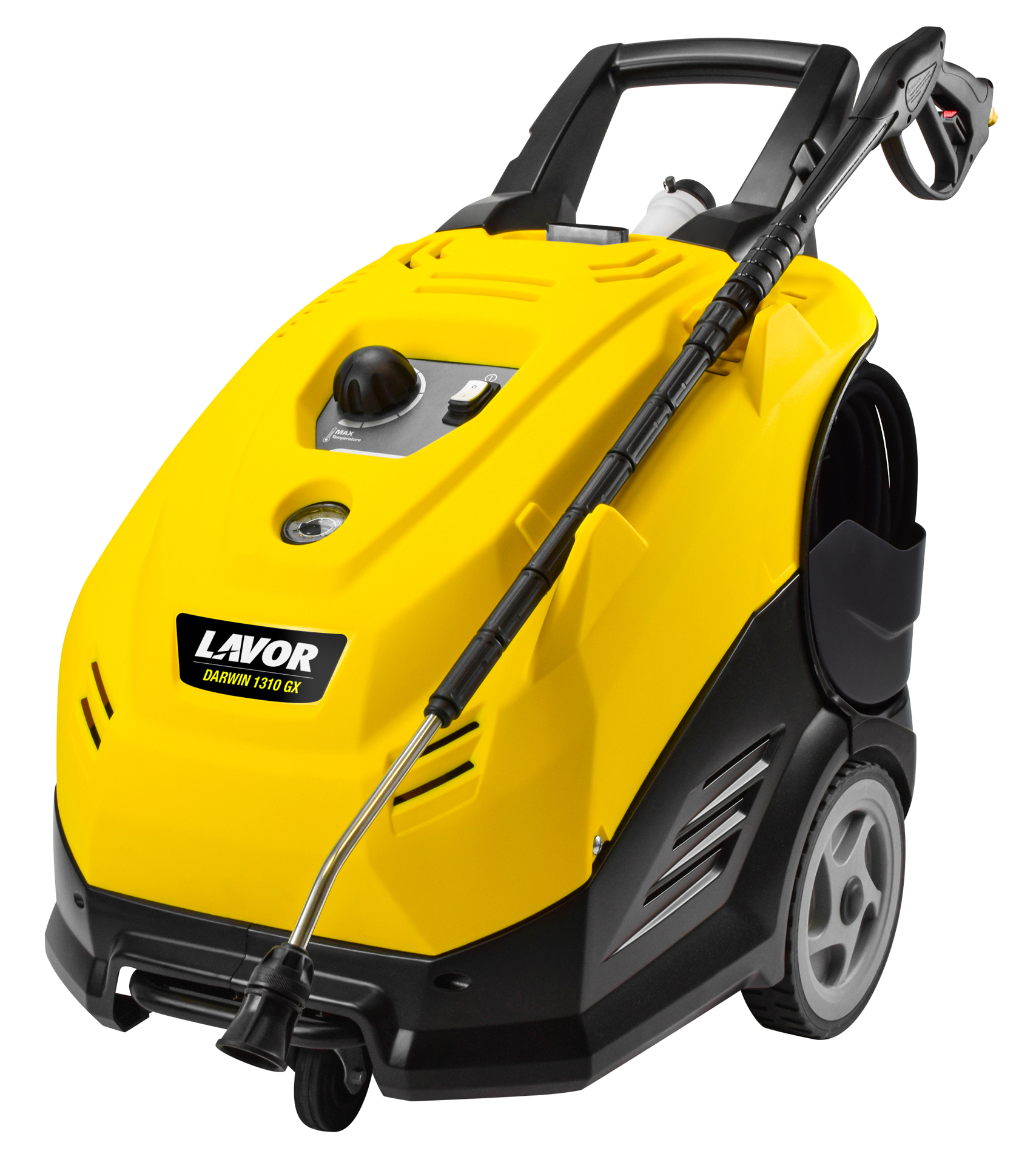 Profi tlaková myčka s ohřevem vody Darwin PLUS 1310 GX Lavor s navijákem na hadici, určená pro profesionální použití. Čerpadlo robustní, odolné konstrukce. Výkon 600 l/hod, max. tlak 150 bar, 3000 W, nastavitelný ohřev na max. 90°C