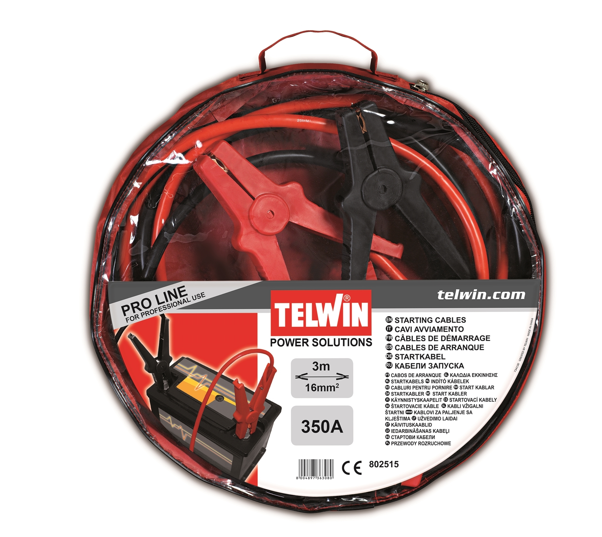 Startovací kabely 350 A Telwin pro nouzové nastartování, délka 3 m.